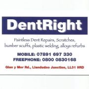 At DentRight we take pride in providing the highest quality work at the most competitive price. We try to complete most repairs within two days, which means that you are without your car for the shortest possible time. So if you have had a scrape in a car park, or someone has just damaged your car, why not pop down and see us in Llandudno Junction and we will offer you some friendly, no obligation advice and a free quote.